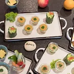 En vegetarisk serveres om morgenen. Der er også en snack bar. En række restauranter såsom Shanghai Haus og Lanna Thai Thailandische spezialitaten tilbyder asaitiske specialiteter, bare 400 meter væk.